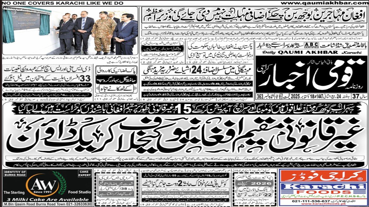Daily Qaumi Akhbar 18-Oct-2025